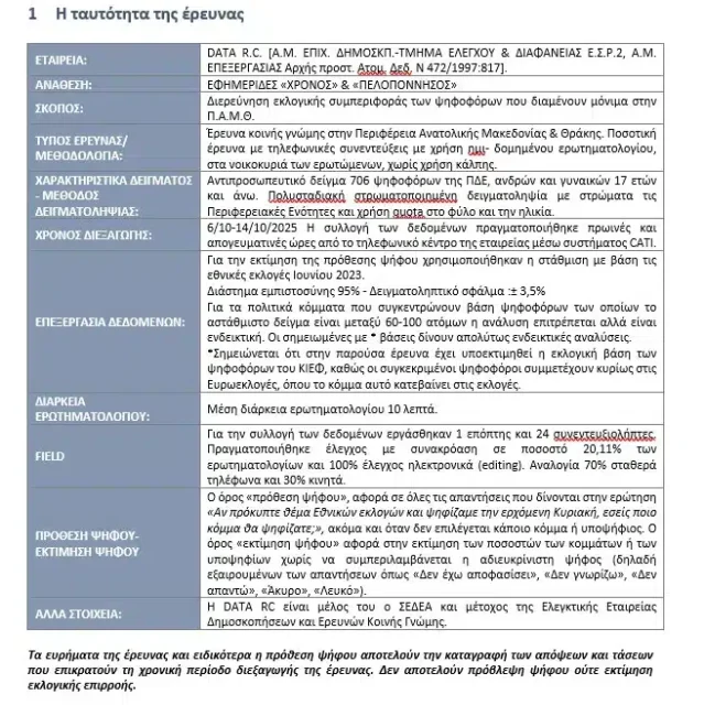 Η έρευνα της Data C αποτυπώνει έτσι έναν τόπο σε κίνηση, όπου το ερώτημα δεν είναι αν αλλάζει ο πολιτικός χάρτης, αλλά πόσο σύντομα και σε ποια κατεύθυνση. Η έρευνα θα συνεχιστεί και στην Περιφέρεια Πελοποννήσου, όπου θα φανεί αν οι τάσεις αυτές έχουν πανελλαδικό αντίκτυπο ή παραμένουν περιφερειακό φαινόμενο.Νέα έρευνα της DATA Consultants με ανατροπές: Υπερφαλαγγίζει Τσίπρα η Μαρία Καρυστιάνου