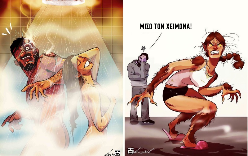Είτε εξολοθρεύει κατσαρίδες, είτε τον χρησιμοποιεί σαν… προσωπικό καλοριφέρ, είτε του ετοιμάζει “δύσκολα” γεύματα όπως… δημητριακά, η σύζυγός του αποτελεί πηγή έμπνευσης για να δημιουργήσει τα πιο χαριτωμένα σκίτσα του.