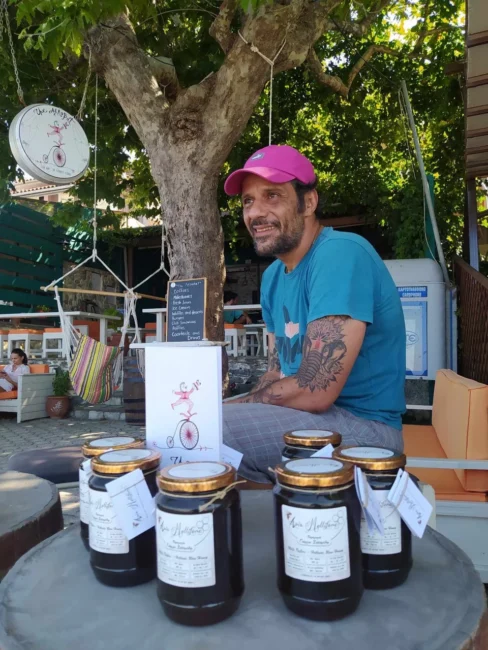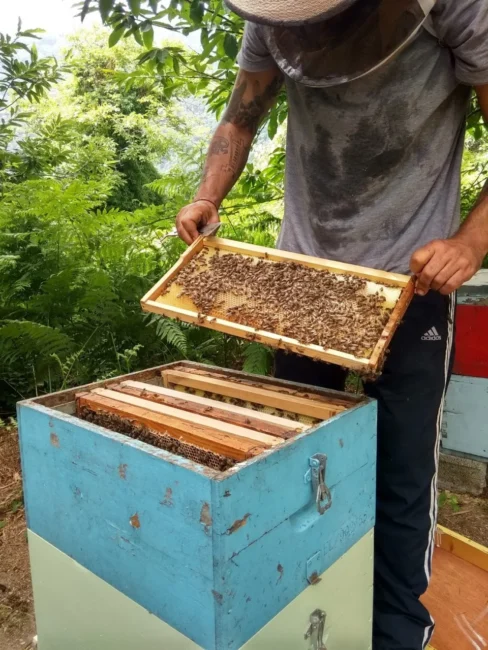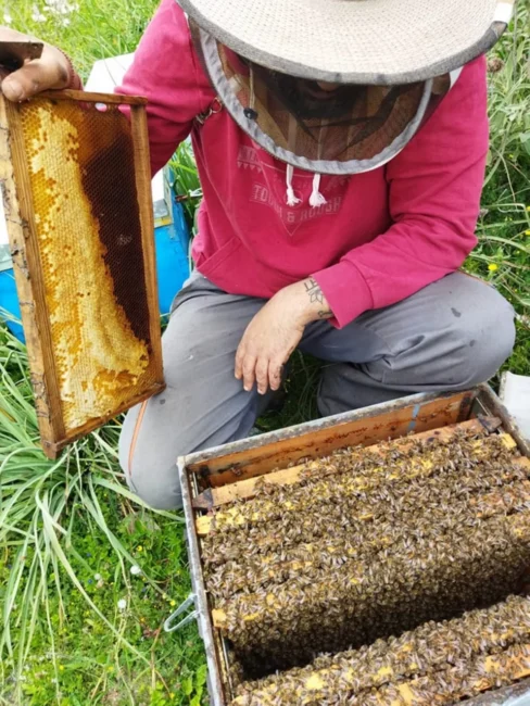 Με τα χρόνια, όταν ήρθε η ανάγκη να γεμίσω αυτή την τρύπα στην καρδιά, γιατί δεν πήγα αμέσως, αποφάσισα ότι ok, το κάνω, το δοκιμάζω. Μέσα σε αυτά τα χρόνια, σκεφτόμουν τι θα έκανα εκεί. Ο θεός έφερε την μελισσοκομεία μπροστά μου. Γνώρισα έναν μελισσοκόμο, του είπα: «Να έρθω να δω τα μελίσσια;» Μου λέει «Έλα». Όταν μου άνοιξε ένα μελίσσι μου άρεσε, είπα «Αυτό θα μου άρεσε να κάνω», χάρηκε η καρδούλα μου. Μετά ξεκίνησα λίγες σπουδές και σεμινάρια και έπιασα την μελισσοκομία ώστε να έχω κάτι να κάνω πάνω στο βουνό.